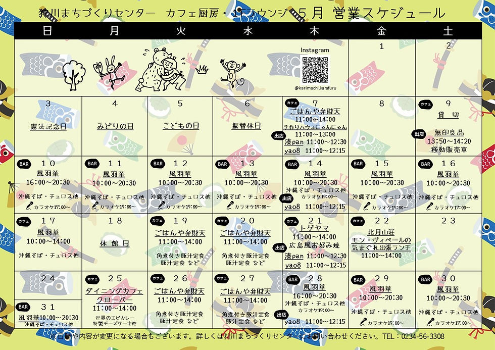 狩川まちづくりセンター5月カフェ出店スケジュール